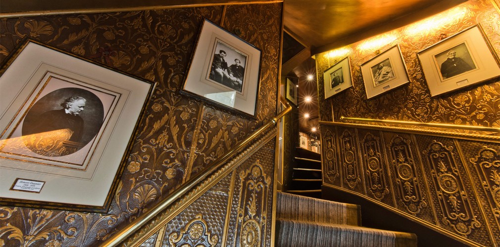 C'est vrai qu'il est très excitant de monter un escalier... en sachant ce qui nous attend en haut... Je lui fais une surprise pour célébrer, au jour exact, les 10 ans d'une si belle rencontre. Avec le Lapin Goormand, nous suivons le maître d'hôtel qui nous conduit vers le salon privé de la Belle Otéro. La porte s'ouvre sur la table du dîner dont les bougies se reflètent dans le grand miroir. Et sur le côté, la banquette, ma surprise...